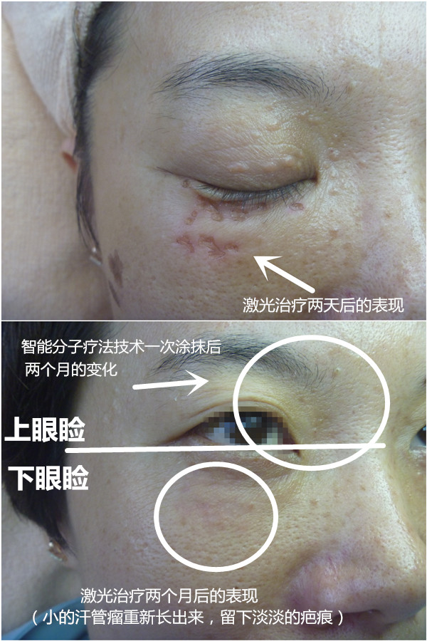 外涂内调,效果更显著:采用“智能分子技术”消退汗管瘤,还可以让我院联合的诊所医生针对您的情况配合调理内分泌,有效预防汗管瘤易复发的问题。